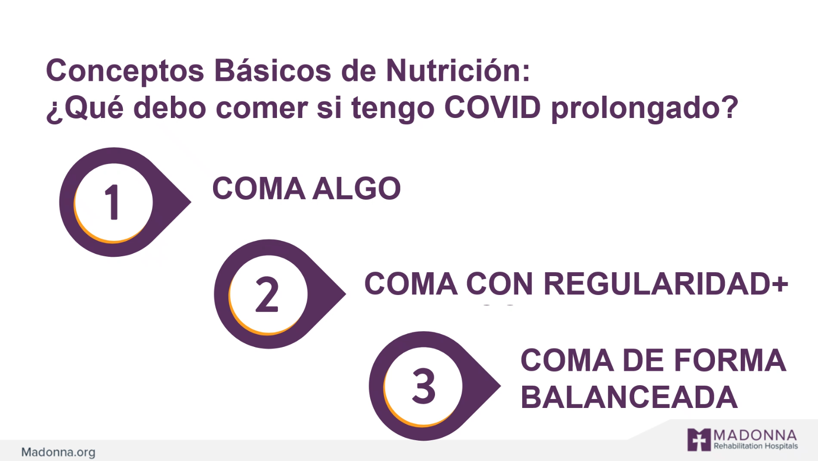 Muchas personas que han tenido una infección del COVID-19 siguen experimentando o desarrollando síntomas adicionales que persisten por meses o incluso años. El Madonna Research Institute ha participado en varios estudios de investigación nacionales e internacionales sobre condiciones post-COVID. Utilizamos los últimos hallazgos de investigación para educar a la comunidad e informar planes de tratamiento individualizados para pacientes a través de nuestro sistema de modelo de cuidado post-COVID. Esta biblioteca de recursos cuenta con contenido educativo y recursos para ayudar a personas que siguen experimentando los efectos persistentes de una infección de COVID-19.