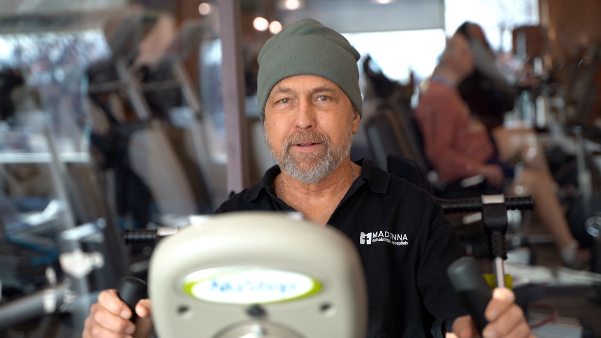 “That was a great way to get him random perturbations and work on his balance reactions,” Cali Carlson, PT, DPT, Madonna’s Inpatient Physical Therapy Clinical Director, said. “His muscles in his ankles would tire quickly, which could delay his reactions.”